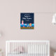 This cute and fun welcome sign features a nautical sailor girl monkey on a wooden deck with a seagull and a crab. In the background there is a pink and white lighthouse, a cute bird on a sailboat, ocean waves and a navy blue starry night sky. The text combines bold and serif fonts for a stylish and modern look. This is perfect for a nautical themed baby shower.
