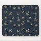 Nautical Gold Anchor & Helm Pattern on Blue Mouse Mat