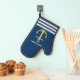Nautical, Gold Anchor Navy Blue Striped Oven Mitt