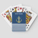 Nautical, Gold Anchor Navy Blue Striped Playing Cards
