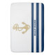 Nautical,Gold Anchor Navy Blue White Stripes Bath Mat