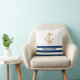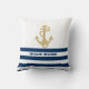 Nautical,Gold Anchor Navy Blue White Stripes Cushion