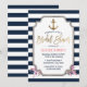 Nautical Gold Anchor Navy Stripes Bridal Shower Invitation