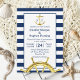 Nautical Gold and Navy Blue Stripes Wedding Invitation