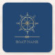 Nautical Gold Boat Wheel,Navy Blue Square Paper Coaster