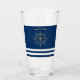 Nautical,Gold Boat Wheel, Navy Blue Stripes Glass