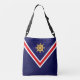 Nautical Golden Ship Wheel on Navy Blue & White Crossbody Bag