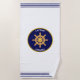 Nautical Golden Ship Wheel on White & Navy Blue Beach Towel