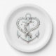 Nautical Heart Rope Anchor Coastal Wedding Paper Plate