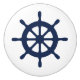 Nautical ship wheel door and drawer pull knobs or handles. Maritime / beach theme design with navy blue blue and white background colour. Customisable background colour. Old boat helm icon. Make your own sailing / ocean themed interior for sailor, skipper or captain. Fun DIY accessories for home and office. Great for beautiful seaside / coastal kids room, kitchen, bathroom, bedroom cabinets, nursery, baby room, children's play room etc.
