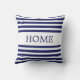 Elegant nautical home on blue and white striped Throw Pillow. Text can be personalised.