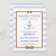 Nautical Boutique Co.'s nautical engagement party invitation features classic traditional styling combined with modern design elements. The typography includes a a classic block lettering reminiscent of nautical styles paired with modern handwriting font. The border is a realistic-looking rope with an "infinity knot," and the background is a modern watercolor finish of traditional nautical blue and white stripes. A matching watercolor anchor completes this nautical design. #Nautical #BeachWedding #DIYWedding