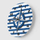 Nautical Inspired Compass and Stripes Pattern Large Clock