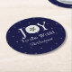 Nautical Christmas navy blue white Sand dollar joy to the world Round Paper Coaster