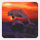 Nautical Jumping Dolphins Orange Ocean Sunset Square Sticker
