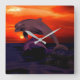 Nautical Jumping Dolphins Orange Ocean Sunset Square Wall Clock