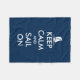 Nautical keep calm and sail on fleece blanket. Create your own funny keep calm and carry on parody for sailing / boating. Vintage keepcalm typography template with sailboat / ship. Custom background colour ie navy blue. Cute keepcalmandcarryon spoof examples: Keep calm and boat on. Keep calm and sail on. Keep calm and travel on. Available in small medium and large. Maritime theme accessory.