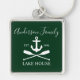 Stylist Script Nautical Lake House Anchor Oars Family Name Forest Green Keychain