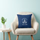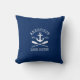 Nautical Lake House Family Name Anchor Oars Navy Blue Throw Pillow
