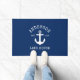 Nautical Lake House Family Name Anchor Navy Blue Doormat