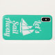 Let's sail away nautical sailboat silhouette phone case with a bold sea green background colour.