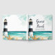Beautiful birthday party guest book with a nautical black and white lighthouse, starfish and shells. Perfect for a birthday party. The words can be changed to suit your own details or requirements