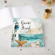 Beautiful bridal shower guest book with a nautical black and white lighthouse, starfish and shells. Perfect for a bridal shower. The words can be changed to suit your own details or requirements
