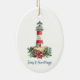 This nautical Christmas ornament features a different lighthouse on each side, with family name and year date on the front, and "Seas & Greetings on the back. Please check out the collection for matching products. If you would like more matching products or other colorways, please contact me through Zazzle Chat.