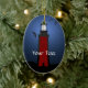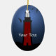 A graphic illustration of a lighthouse on a custom Christmas ornament. Original artwork: Copyright Charmaine Paulson