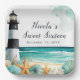 Beautiful sweet sixteen plates with a nautical black and white lighthouse, starfish and shells. Perfect for a sweet sixteen birthday party. The words can be changed to suit your own details or requirements