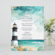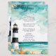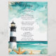 Beautiful wedding menu with a nautical black and white lighthouse, starfish and shells. Perfect for a wedding. The words can be changed to suit your own details or requirements