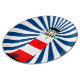 Nautical design featuring a red orange lighthouse emitting nautical blue-and-white beams