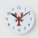 Nautical Lobster Blue Stripe Rustic Decor Round Clock