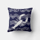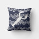 Nautical Lobster Navy Blue White Wave Stripes Cushion