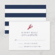 Designed to coordinate with our Nautical Mix wedding invitation collections, this coastal chic wedding response card in summery red, white and blue features a small red lobster illustration at the top with elegant navy blue lettering and a navy and white horizontal striped backer.