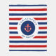 Nautical Marine Navy Blue Red White Stripes Fleece Blanket
