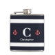Nautical Marine Navy Blue White Stripes Hip Flask