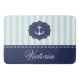 Nautical Mint Navy Blue Anchor Custom Name Bath Mat