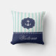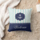 Nautical Mint Navy Blue Anchor Custom Name Cushion
