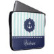 Nautical Mint Navy Blue Anchor Custom Name Laptop Sleeve