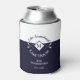 Nautical Modern Navy Blue Grey Monogram Lake House Can Cooler