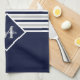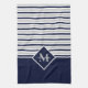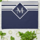 Nautical Modern Navy Blue Grey Monogram Tea Towel