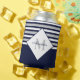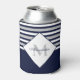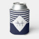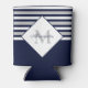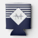 Nautical Modern Navy Blue Grey Stripes Monogram Can Cooler