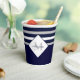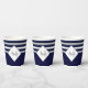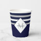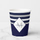 Nautical Modern Navy Blue, White Striped Grey Monogram Paper Cup Glass | Featuring an easy-to-personalise template, this design is both elegant and unique. This collection is perfect for personalising any home or occasion.