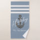 Modern calligraphy script Hubby over an Anchor and personalised with Mr. ... name. : Nautical Monogrammed Dusty Blue Anchor Beach Wedding. Elegant Hubby Nautical Dusty Blue & White Striped Beach Towel