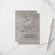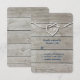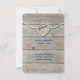 A white rope tied in a heart and navy and white type, decorates this RSVP on a sun bleached wood board background, making it perfect for the nautical themed wedding.