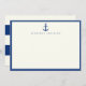 Nautical navy anchor custom note card. A navy blue and ivory white nautical themed anchor flat note card which is the perfect addition to any stationery wardrobe. Maybe you live near the sea, own a boat or are just a sea lover - this card would be a great feature in your stationery wardrobe. The card can be personalised with the inclusion of a name.
