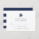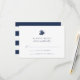 Designed to coordinate with our Nautical Mix wedding invitation collections, this coastal chic wedding response card in navy and white features a tall sailing ship illustration at the top with elegant navy blue lettering and a navy and white horizontal striped backer.