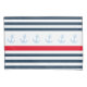 Nautical navy, white and red stripe design with light blue anchors. Back of pillow case plain white.