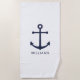 Nautical Navy Blue Anchor and Custom Name Beach Towel